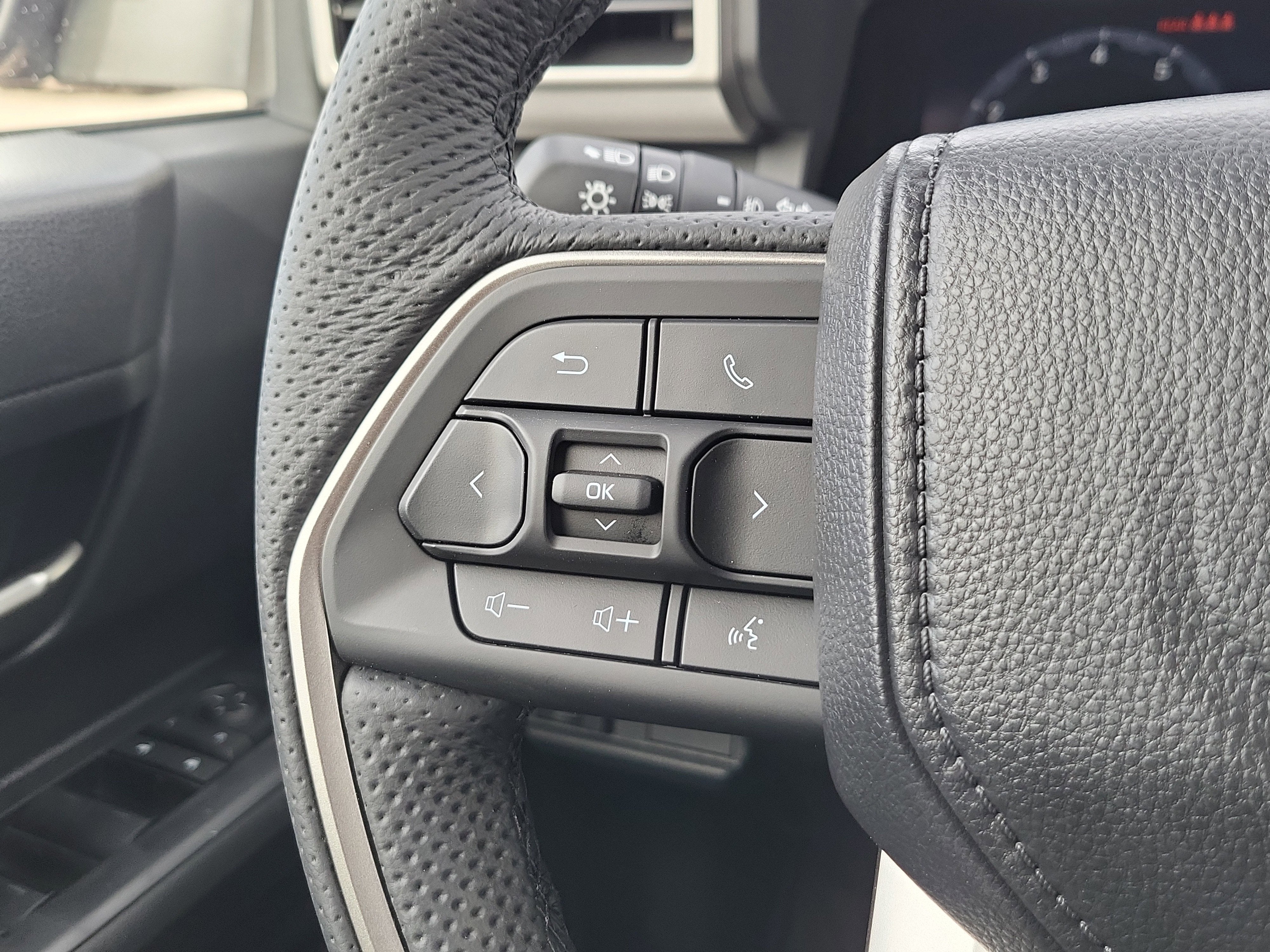 - Leather-trimmed manual tilt/telescopic steering wheel with phone, audio, display/infotainment, and Driver Assist controls