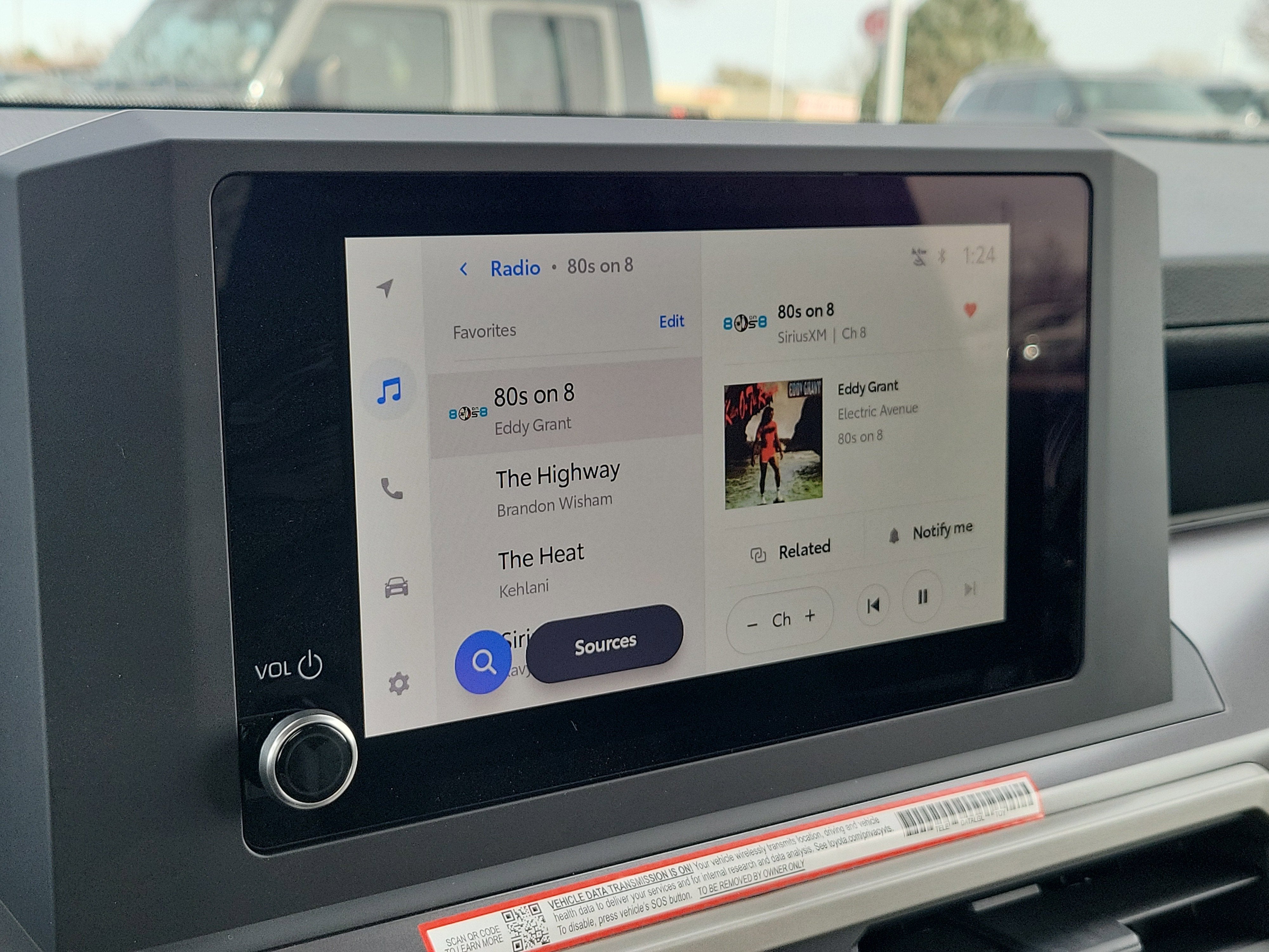 - 8-in. Toyota Audio Multimedia display with 6-speaker audio system, wireless Apple CarPlay® & Android Auto™ compatibility, SiriusXM® 3-month trial. See toyota.com/connected-services for details.