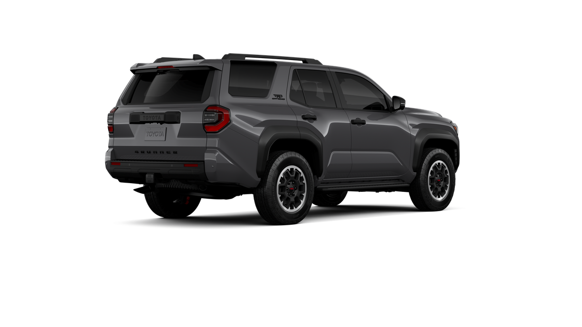 - Black honeycomb-style grille, mirror caps, door handles and overfenders; color-keyed rear spoiler; black "TRD OFF ROAD" and "4RUNNER" badges