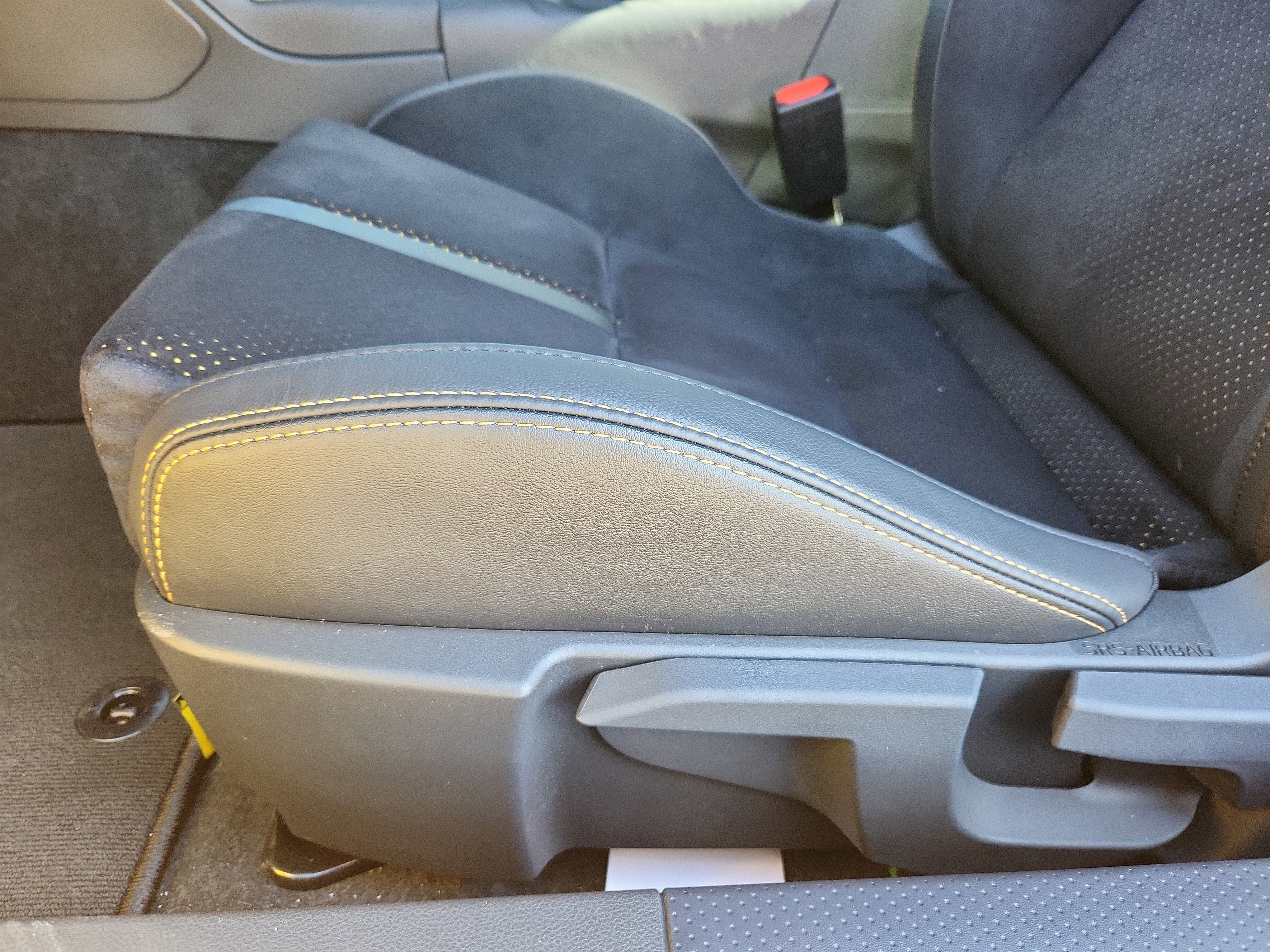 - Yellow-contrast-stitched armrests