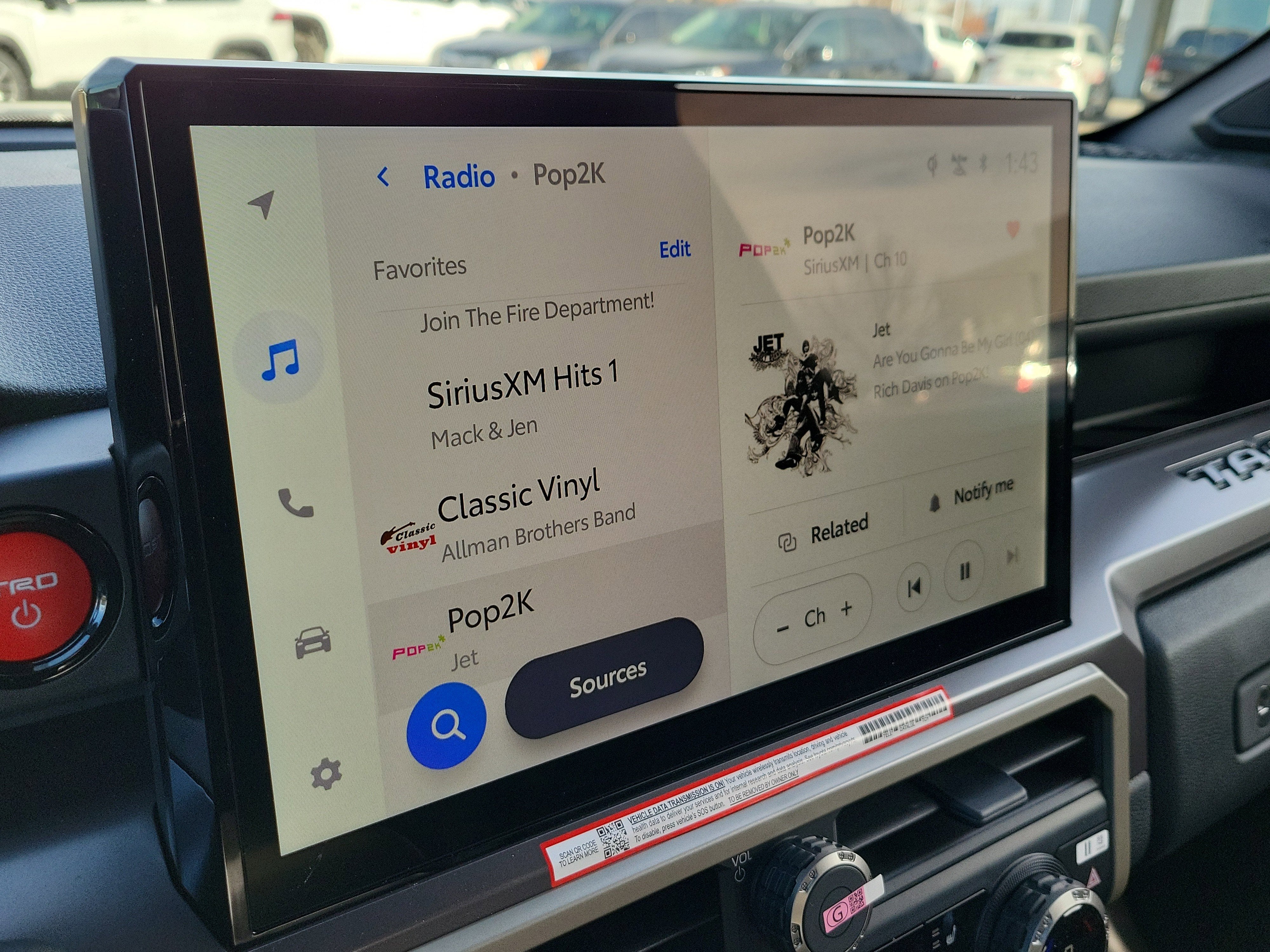 - 8-in. Toyota Audio Multimedia display with 6-speaker audio system, wireless Apple CarPlay® & Android Auto™ compatibility, SiriusXM® 3-month trial subscription. See toyota.com/connected-services for details.