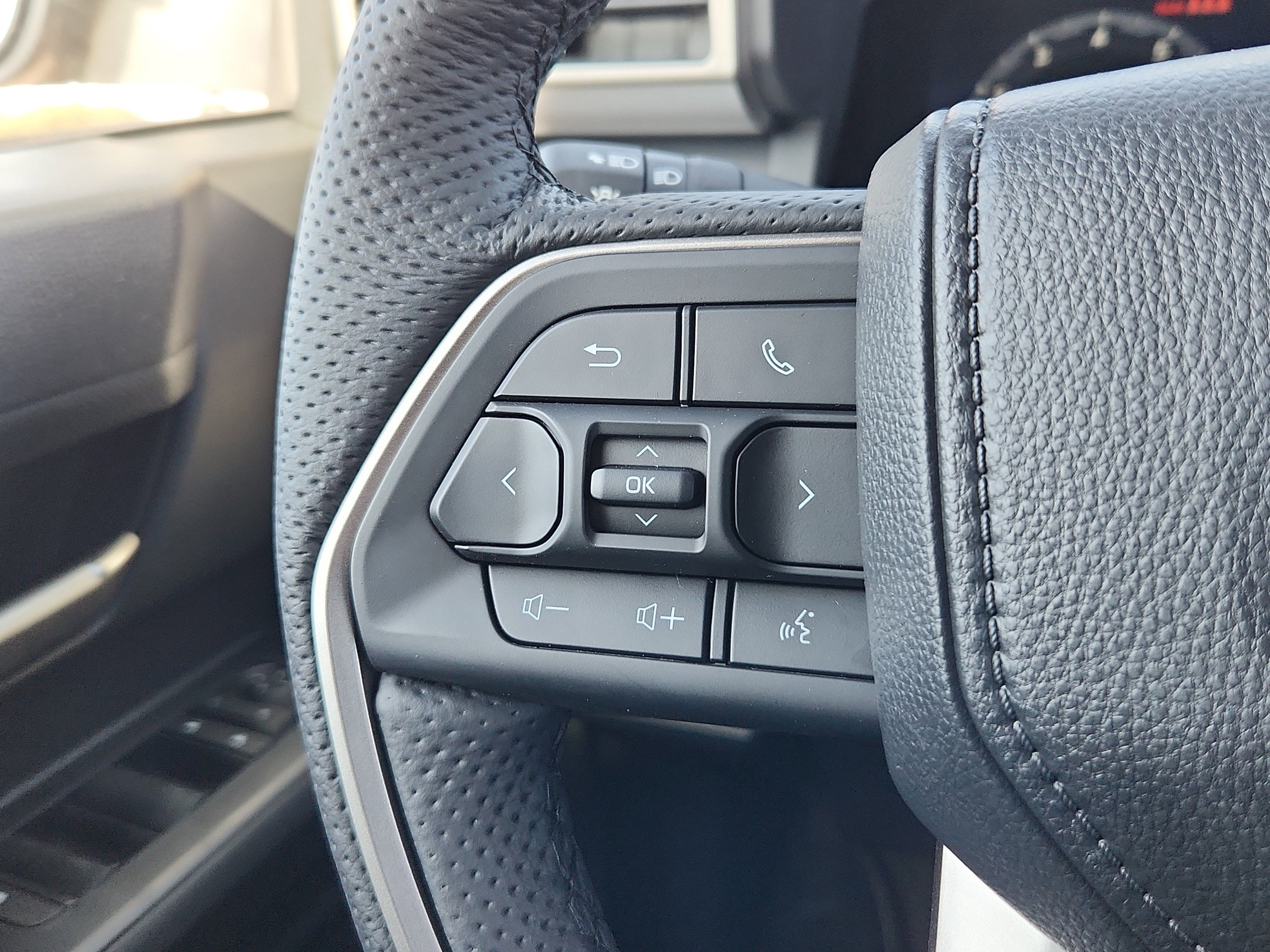 - Leather-trimmed manual tilt/telescopic steering wheel with phone, audio, display/infotainment, and Driver Assist controls