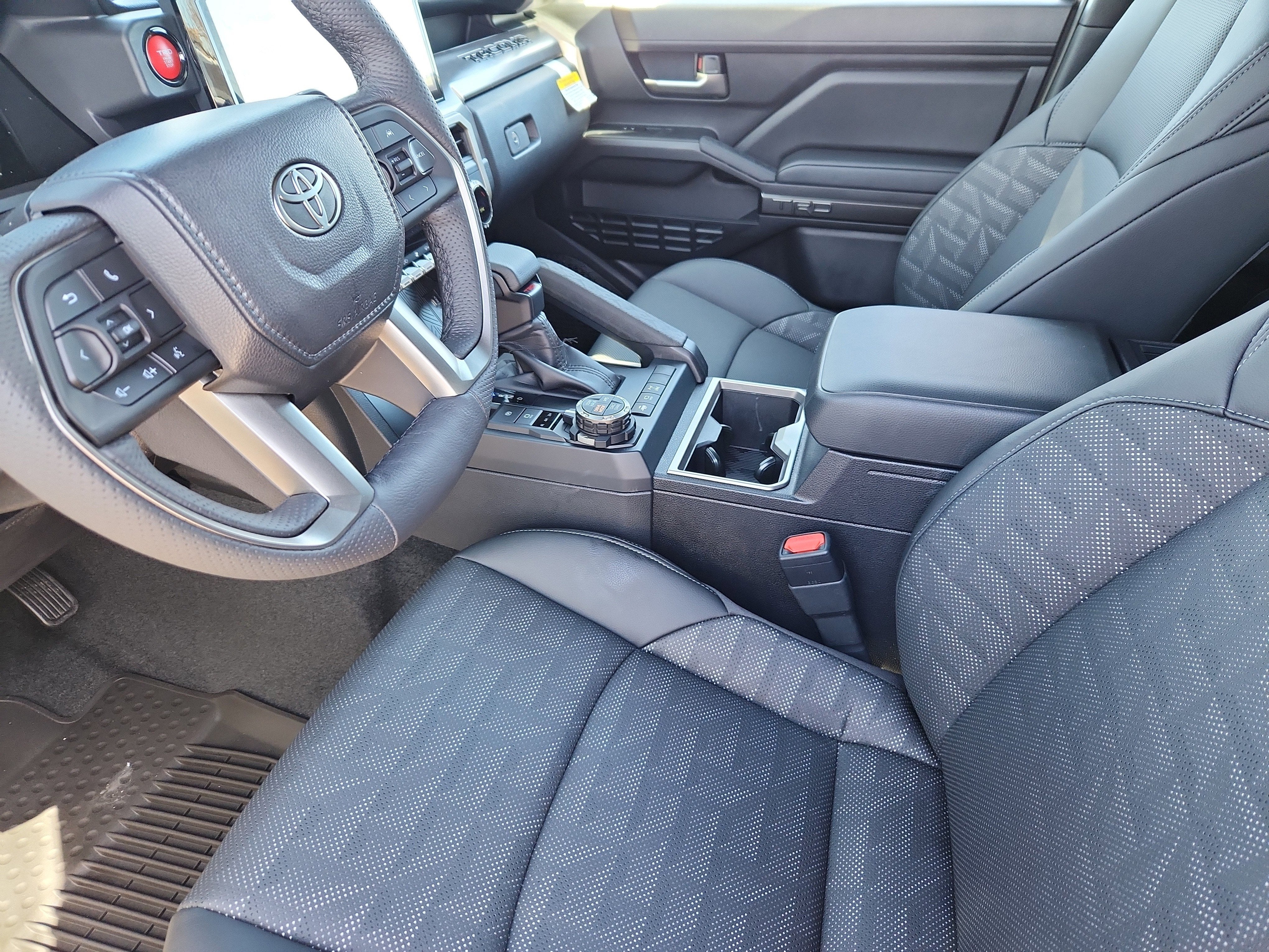 TRD Off-Road Premium Package (A/T) — includes 18-in. TRD alloy wheels, SofTex®-trimmed seats with heated and ventilated 8-way power-adjustable front seats, leather-trimmed heated steering wheel, 14-in. Toyota Audio Multimedia display, Multi-Terrain Monitor (MTM), JBL® Premium Audio with JBL® FLEX portable speaker, moonroof, Qi-compatible wireless charging, dual zone automatic climate control, Front and Rear Parking Assist with Automatic Braking (PA w/AB) and Pedestrian Detection, prewired auxiliary switches, digital rearview mirror, Integrated Trailer Brake Controller (ITBC), power open/close tailgate, Digital Key capability, 400W/120V AC power inverter, and power horizontal rear window